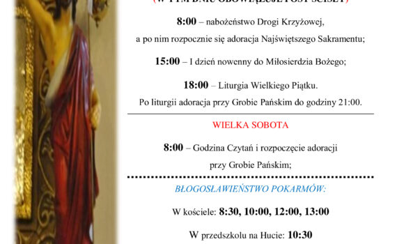 Dziękujemy wszystkim, którzy uczestniczyli w tych dniach w rekolekcjach wielkopostnych, przystąpili do sakramentu pokuty i pojednania oraz złożyli dary serca dla potrzebujących wsparcia naszych bliskich. Dzisiejsza niedziela rozpoczyna najważniejszy i najbardziej uroczysty czas w roku liturgicznym – Wielki Tydzień. Postarajmy się te święte dni przeżyć godnie i prawdziwie po chrześcijańsku. […]