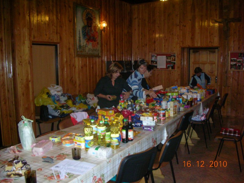 Jak co roku parafianie pomagają parafianom. Podczas rekolekcji w dzień spowiedzi parafianie do kościoła przynieśli nie tylko swoje grzechy, ale również dar swojego serca, którym chcieli się podzielić z najuboższymi mieszkańcami parafii. Wielka ilość artykułów spożywczych pozwoli nie jednej ubogiej rodzinie przeżyć spokojnie święta Narodzenia Pańskiego. Dziękujemy wszystkim parafianom którzy włączyli się w zbiórkę żywności dla najuboższych mieszkańców parafii.