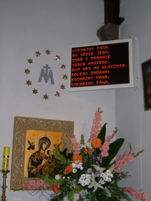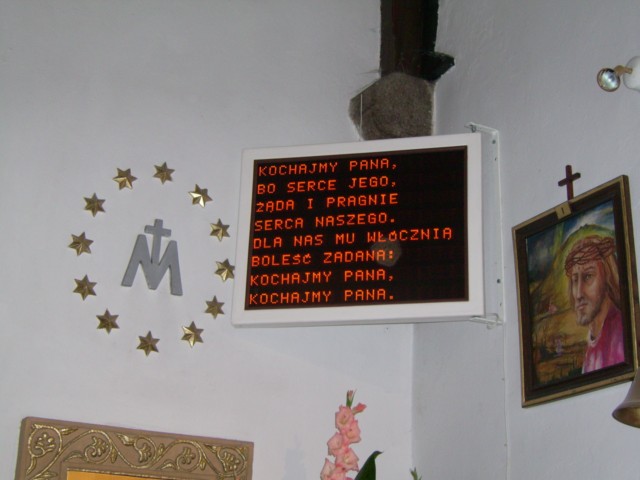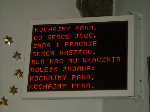 Dnia 25 lipca 2009 r. zamontowano w naszej świątyni elektroniczny wyświetlacz pieśni. Mamy nadzieję, że pomoże on w czynnym uczestnictwie wiernych w liturgii. Kto śpiewa, dwa razy się modli!