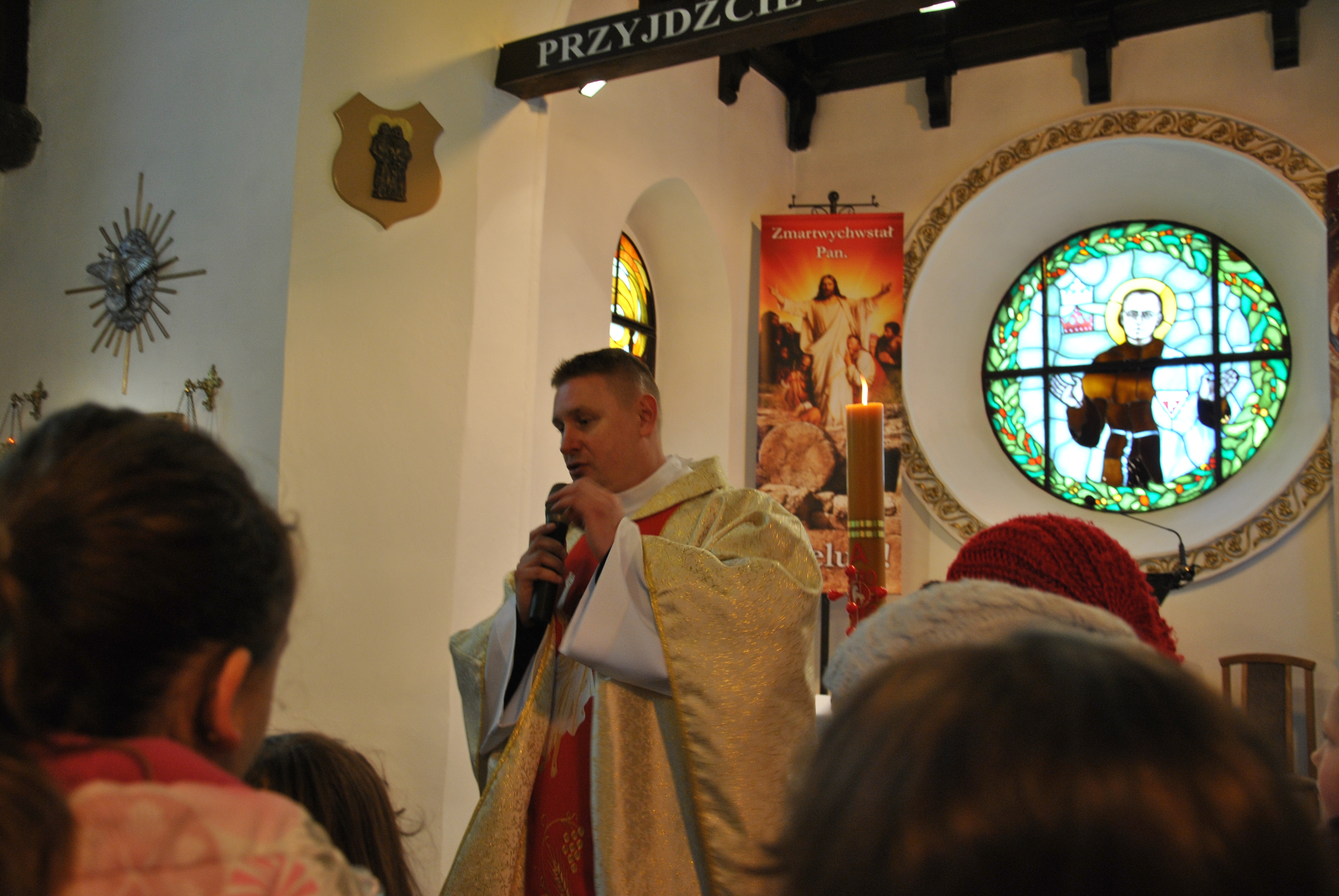 W Poniedziałek Wielkanocny z inicjatywy Księdza Mariusza po raz pierwszy zorganizowaliśmy konkurs wielkanocny dla dzieci. O godzinie 12 przy licznym udziale dzieci rozpoczęła się Eucharystia, a po niej konkurs szukania schowanych wcześniej w śniegu jajek. Do pustych koszyków dzieci przy pomocy rodziców mieli znaleźć jak największą ilość jajek aby wygrać główną nagrodę – wielkie złote jajko z czekolady. Zabawa sprawiła dzieciom jak i ich rodzicom wiele radości.