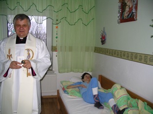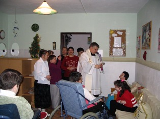 Wizyta kolędowa rozpoczęła się nabożeństwem przed Najświętszym Sakramentem w kaplicy z udziałem sióstr, dzieci i o. kapelana. Następnie pobłogosławiliśmy mieszkania i sale w których na co dzień przebywają siostry i chorzy.