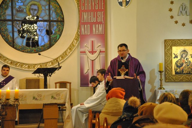 W dniach od 17.03 do 20.03.2013 r. cała nasza Wspólnota parafialna przeżywała czas rekolekcji wielkopostnych. Tegorocznym rekolekcjom przewodniczył Ks. Mariusz Habiniak, który wskazywał nam Świętą Rodzinę jako wzór życia. Przedstawiając nam w każdym dniu Najświętszą Maryję Pannę, świętego Józefa oraz Pana Jezusa zachęcał nas byśmy odpowiadali Bogu jak Maryja, słuchali poleceń Boga jak święty Józef oraz trwali na modlitwie jak Jezus. Tradycyjnie już w czasie spowiedzi wielkopostnej do kościoła prócz naszych grzechów przynosiliśmy także artykuły żywnościowe z których zostały zrobione paczki na wielkanoc dla najbardziej potrzebujących naszych Parafian. Składamy serdeczne podziękowania wszystkim, którzy (czy to na piechotę czy samochodem) dzielili się tym co mają. Dziękujemy też Parafialnemu Zespołowi Caritas za przygotowanie paczek.