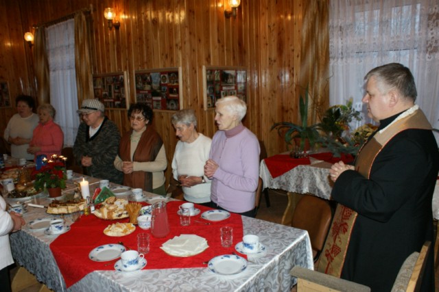 Po złożeniu życzeń nadszedł czas na degustację ciast wypieczonych przez Panie. Był również czas na wspólne śpiewanie kolęd. Spotkanie upłynęło w miłej rodzinnej atmosferze.