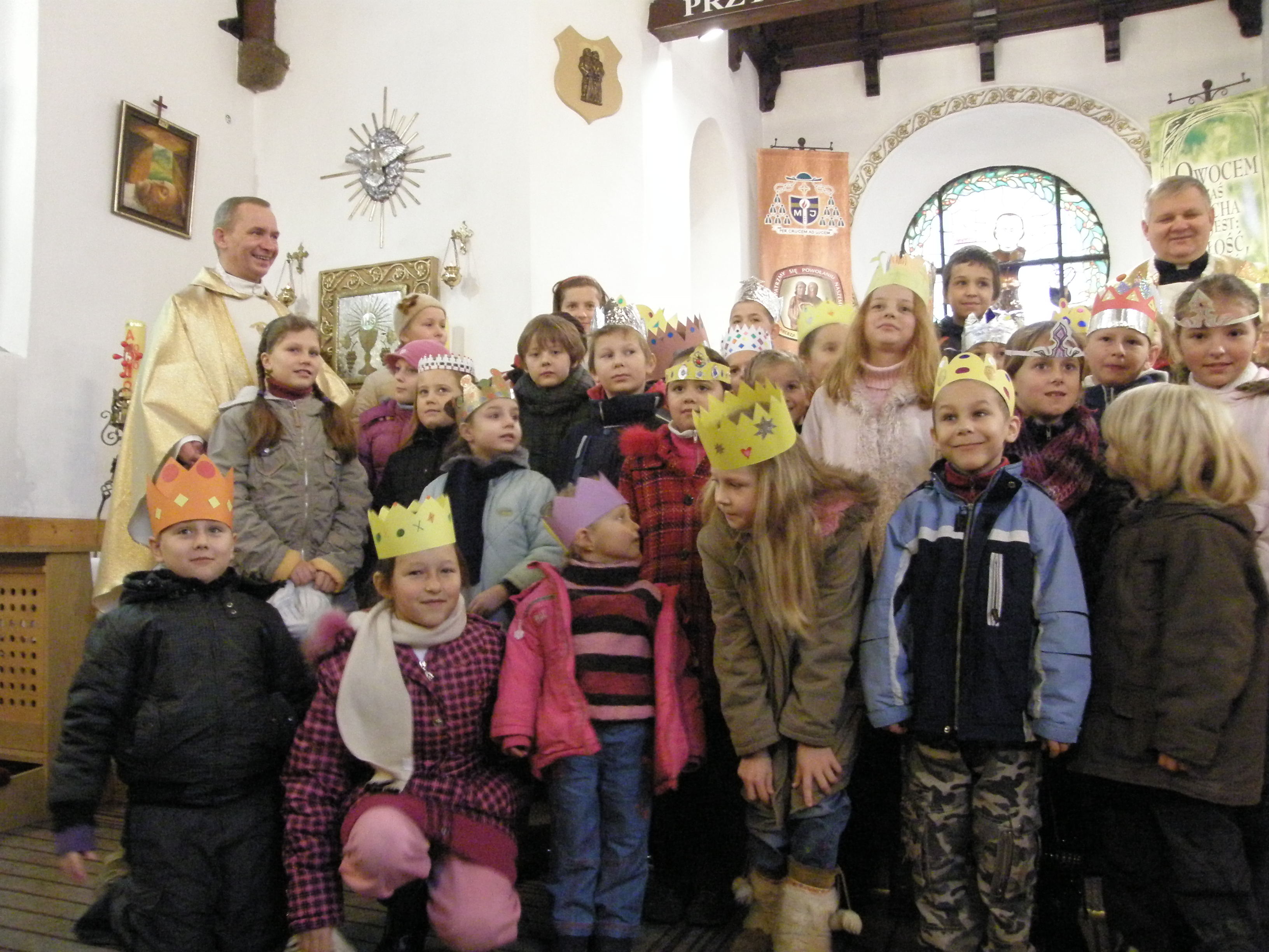 Uroczystość Chrystusa Króla Wszechświata kończy rok liturgiczny w Kościele. W tym dniu o godzinie 1200 sprawowana była uroczysta Msza Święta z licznym udziałem dzieci oraz rodziców. Mszy Świętej przewodniczył ks. Zenon Wnuk, katecheta dzieci ze szkoły nr 1. Dzieci przyniosły ze sobą korony,które zrobiły przy pomocy rodziców dla uczczenia tej uroczystości.