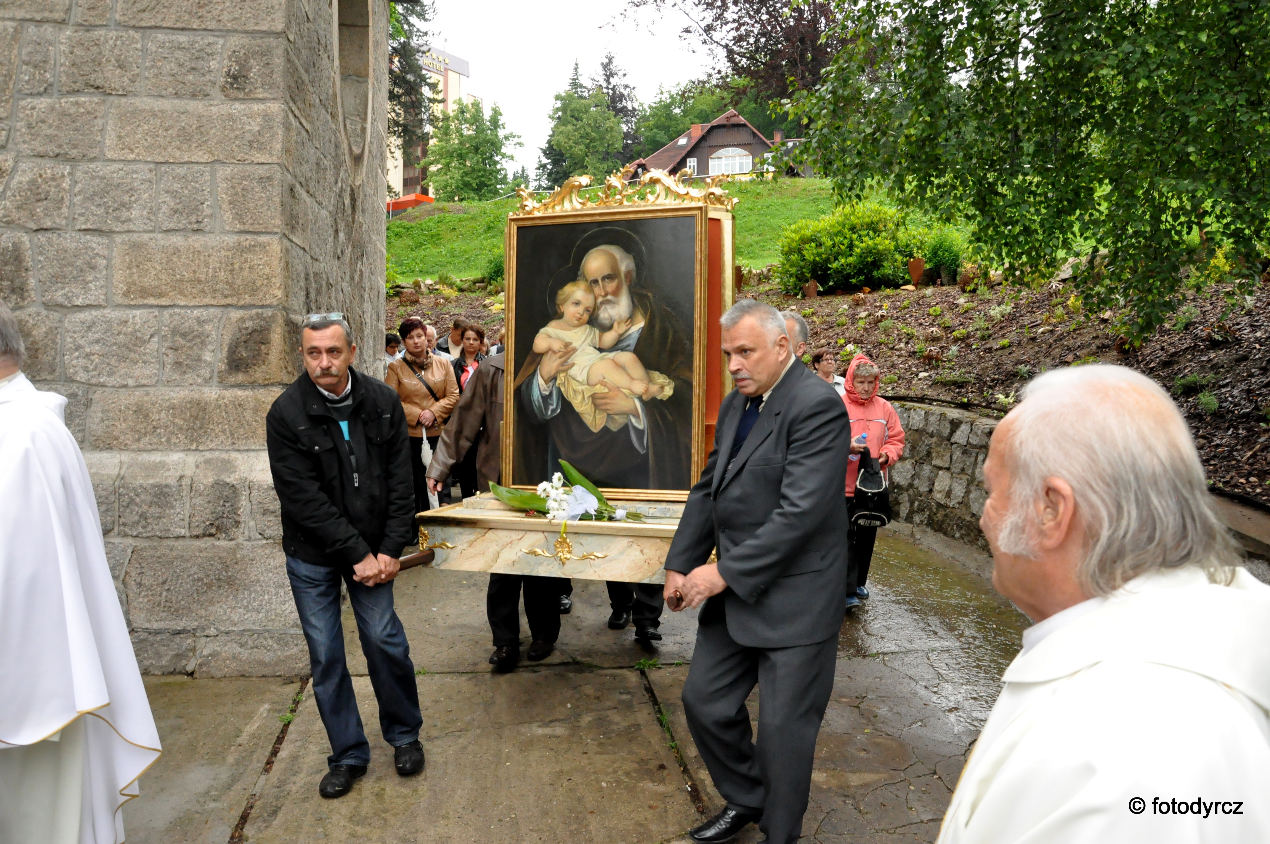 W dniu 26 czerwca br. dziękowaliśmy Panu Bogu za dar nawiedzenia naszej parafii przez świętego Józefa w Jego obrazie. Był to dla nas czas szczególny gdyż mogliśmy bardziej wpatrywać się w postać tego, któremu została powierzona misja opieki nad Maryją i Jezusem. W tym czasie nasza Wspólnota trwała na modlitwie, która była ofiarowana w niedzielę za rodziny naszej parafii w poniedziałek za chorych i cierpiących we wtorek za dzieci i młodzież, a w środę modliliśmy się za zmarłych. Przez ten czas od godziny 09:00 był wystawiony Najświętszy Sakrament, aż do nabożeństwa czerwcowego. Nie brakowało osób, które w ciągu dnia przychodziły adorować Pana Jezusa i wypraszać za przyczyną świętego Józefa potrzebne łaski dla siebie oraz dla swoich bliskich. O godzinie 15:00 (w środę),została odprawiona uroczysta Eucharystia, której przewodniczył Ksiądz Proboszcz, a homilię wygłosił Ksiądz Kanonik Marian Matula. Także w czasie Mszy Świętej zostały poświęcone różańce, które zostaną wręczone mężczyznom naszej parafii, którzy zawiązali męską różę różańcową. Drugim owocem peregrynacji jest podjęta przez kilka osób Duchowa Adopcja Dziecka poczętego. Po zakończonej Eucharystii obraz świętego Józefa został przewieziony w uroczystej kolumnie samochodów do parafii Bukowiec w dekanacie Mysłakowice. Dziękujemy wszystkim, którzy pomogli w przygotowaniu peregrynacji obrazu w naszej parafii.